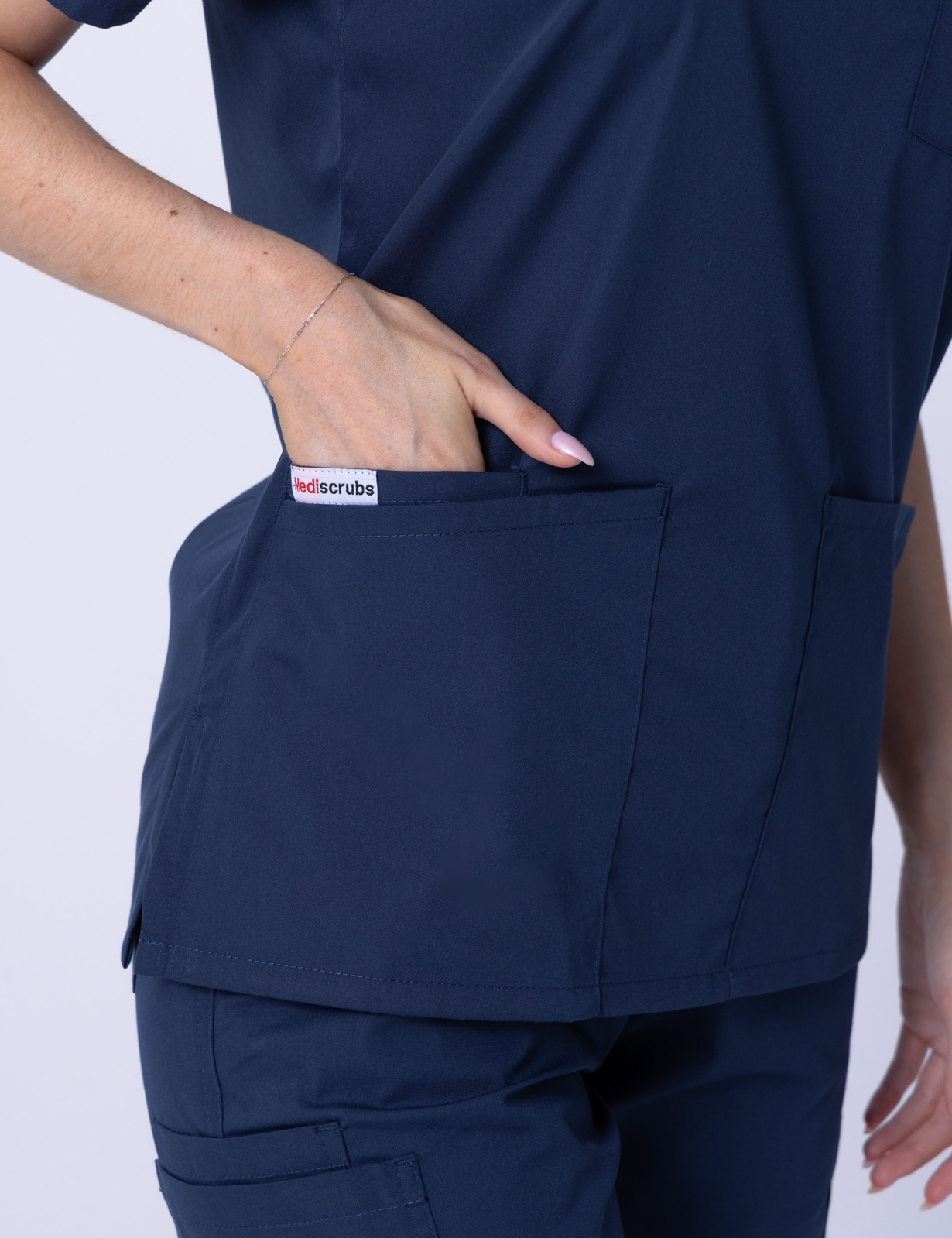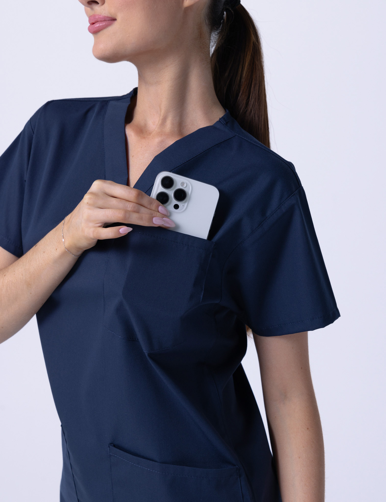 You know from the streets of the world's fashion capitals that androgynous fashion has been adopted by the elite of the fashion industry and is here to stay. This Australian-designed nursing scrub top unites the best in styling and functionality with its simple uncomplicated clean lines. As workwear goes this 'fan favourite' scrub top provides next-level comfort for enhanced performance. This scrub top can be easily paired with our 'cargo', 'regular-cut', or 'utility' scrub pants for a go-to wardrobe staple.