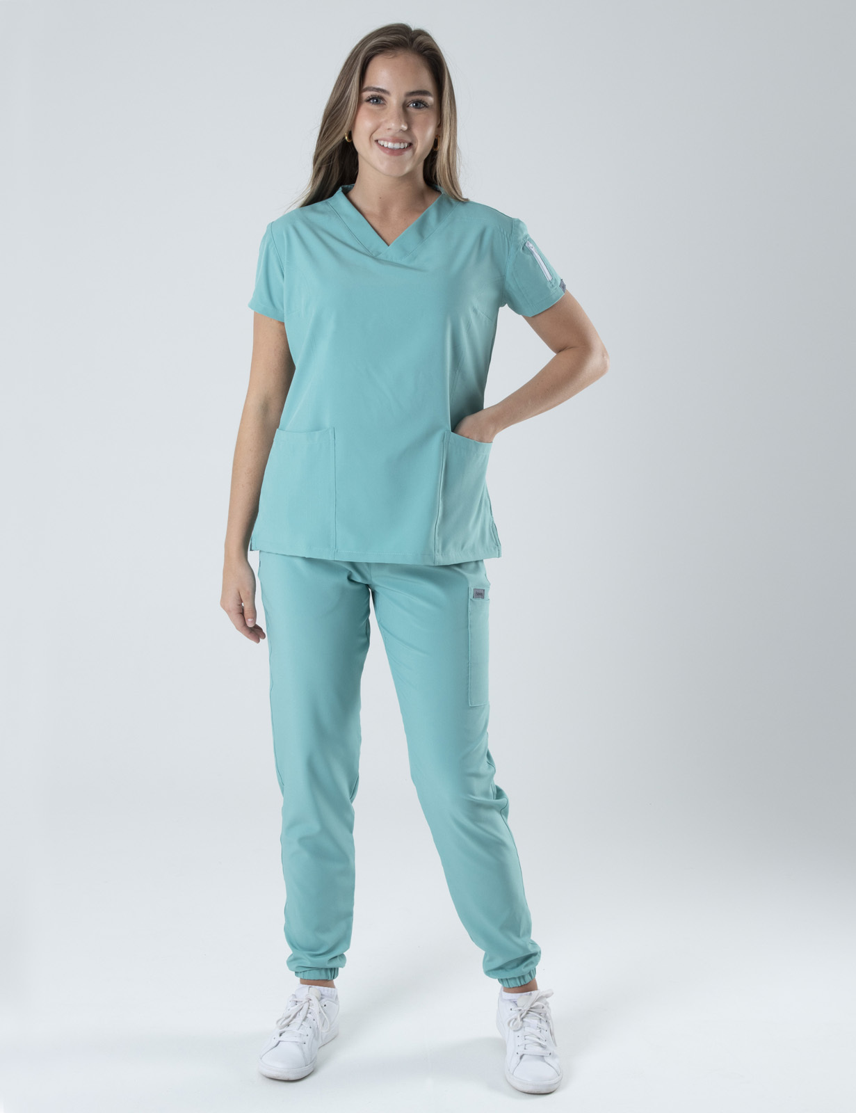 Crafted for the ultimate in comfort and breathability, this women's scrub top is quick-drying, odour resistant, moisture-wicking, and the weave is ultra-lightweight like activewear.