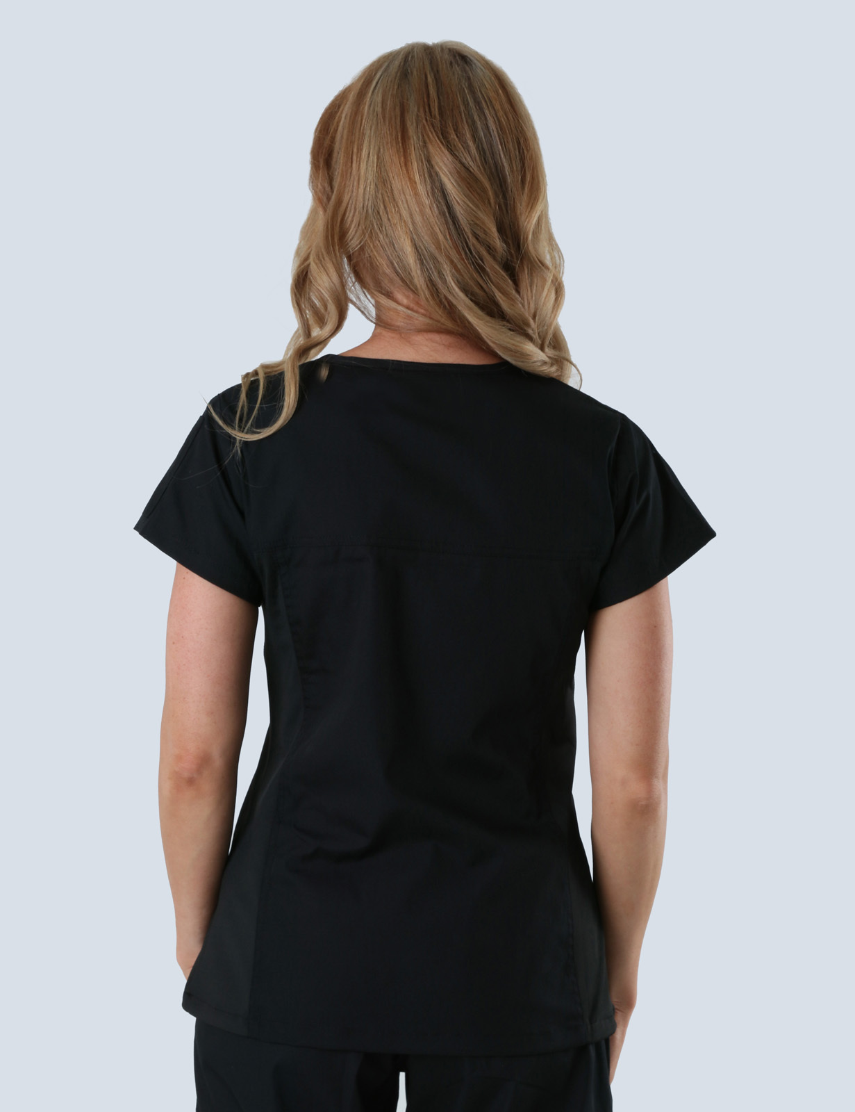 • TOP - BLACK WOMEN'S FIT SPANDEX SCRUB TOP