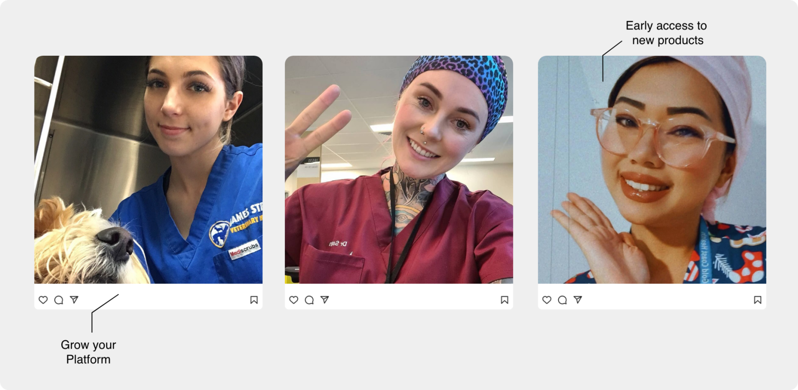 • Mediscrubs Ambassadors enjoy free merchandise each month and can provide their friends and followers with a unique 10% discount code