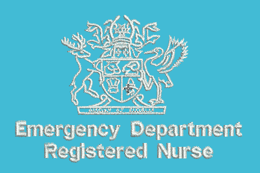 • LOGO - LEFT CHEST / CREST - QUEENSLAND GOVERNMENT /EMERGENCY DEPARTMENT RegisteredRED NURSE (FREE EMBROIDERY)