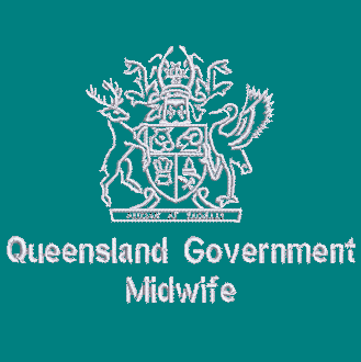 • LOGO - LEFT CHEST / CREST ’??Ç÷Ç??Ç?? QUEENSLAND GOVERNMENT with MIDWIFE TEXT (FREE EMBROIDERY)