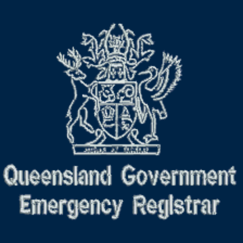 • LEFT CHEST / CREST ’??Ç÷Ç??Ç?? QUEENSLAND GOVERNMENT LOGO with EMERGENCY REGISTRAR TEXT (FREE EMBROIDERY)