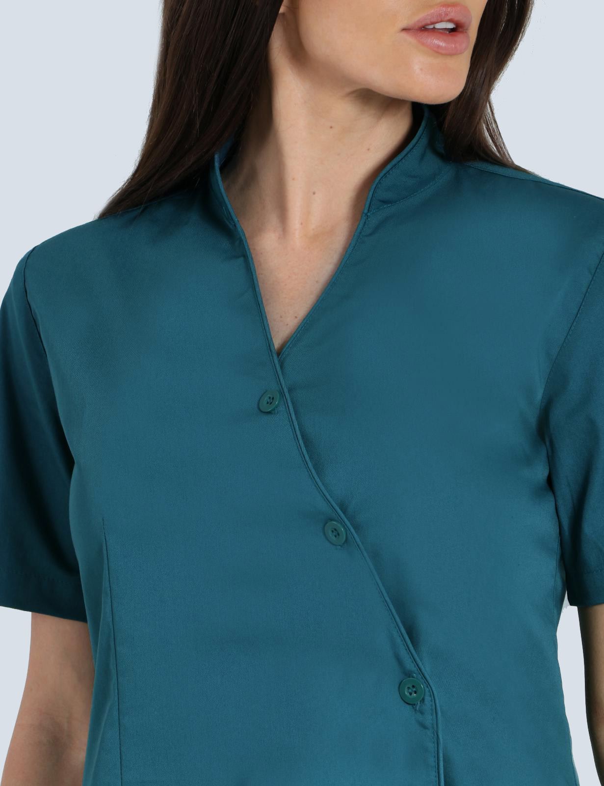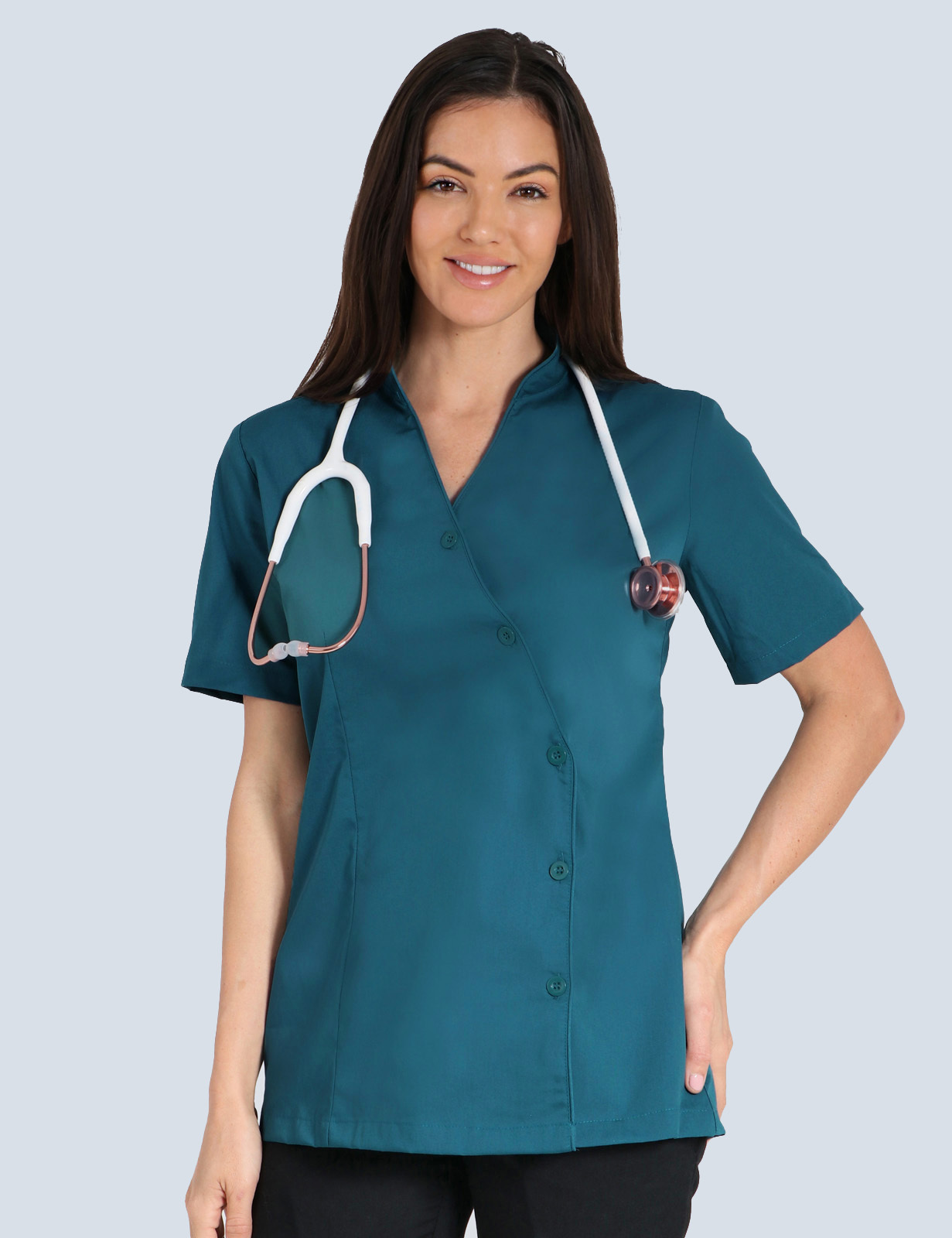 If you’???re looking for ladylike refinement and classic styling, then the Jessie tunic scrub top is the perfect addition to your work wardrobe and one of our favourite women's tunic top styles at Mediscrubs. Easily paired with cargo or utility scrub pants for a flattering everyday look. The Jessie tunic features alluring details and ultra-soft fabrication. The button-down crossover neckline and flowy silhouette make it easy to dress up or down.