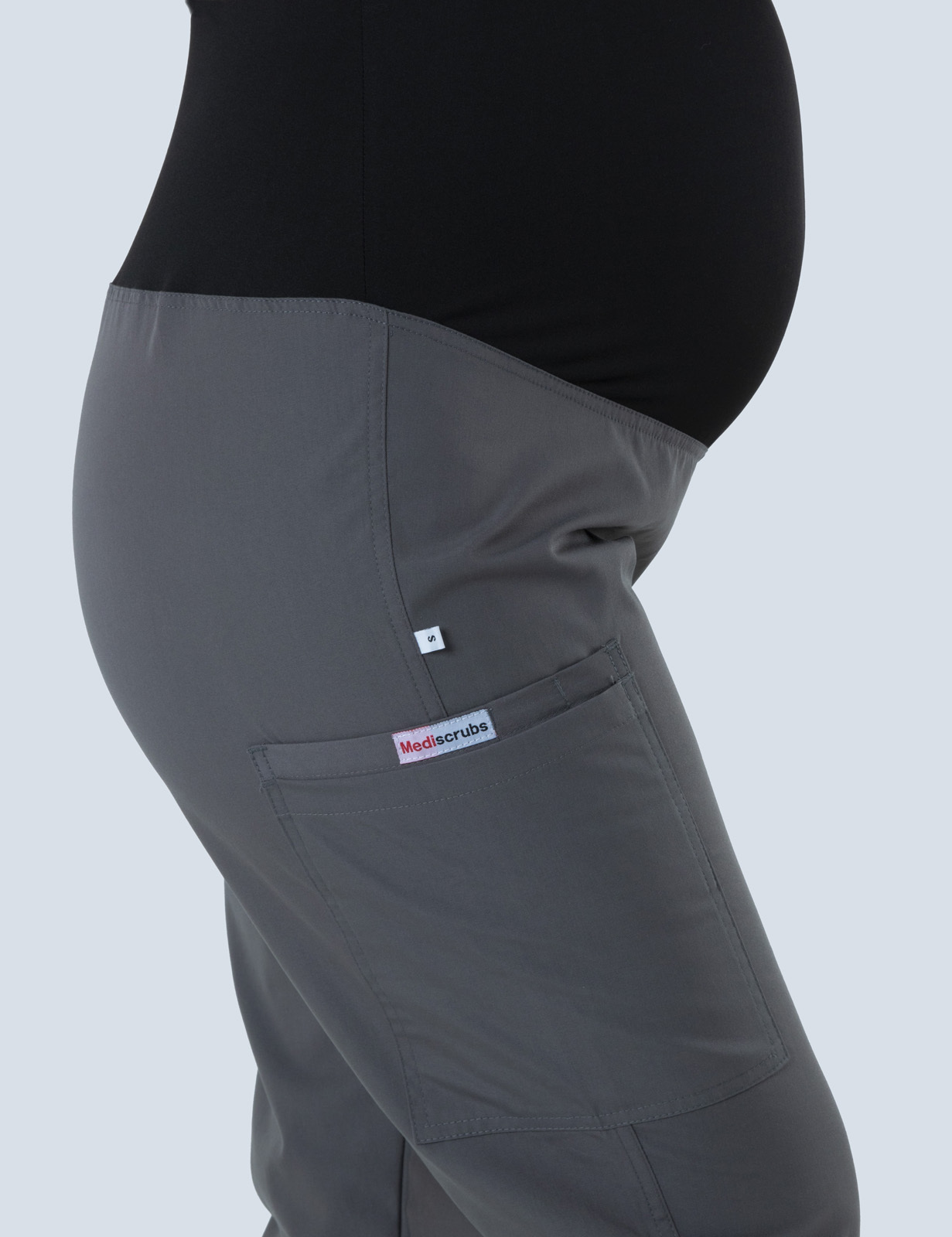 If you like fashion and style our MATERNITY CARGO SCRUB PANTS are probably a good fit for you. These pregnancy scrub pants are made to flatter your shape without limiting movement and feature a stretchy spandex elasticated waistband that can be flipped down or pulled up gently over the belly.