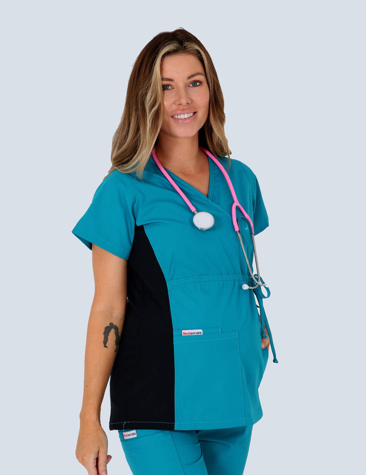 Maternity Scrub Top With Spandex Panel - Teal - Large