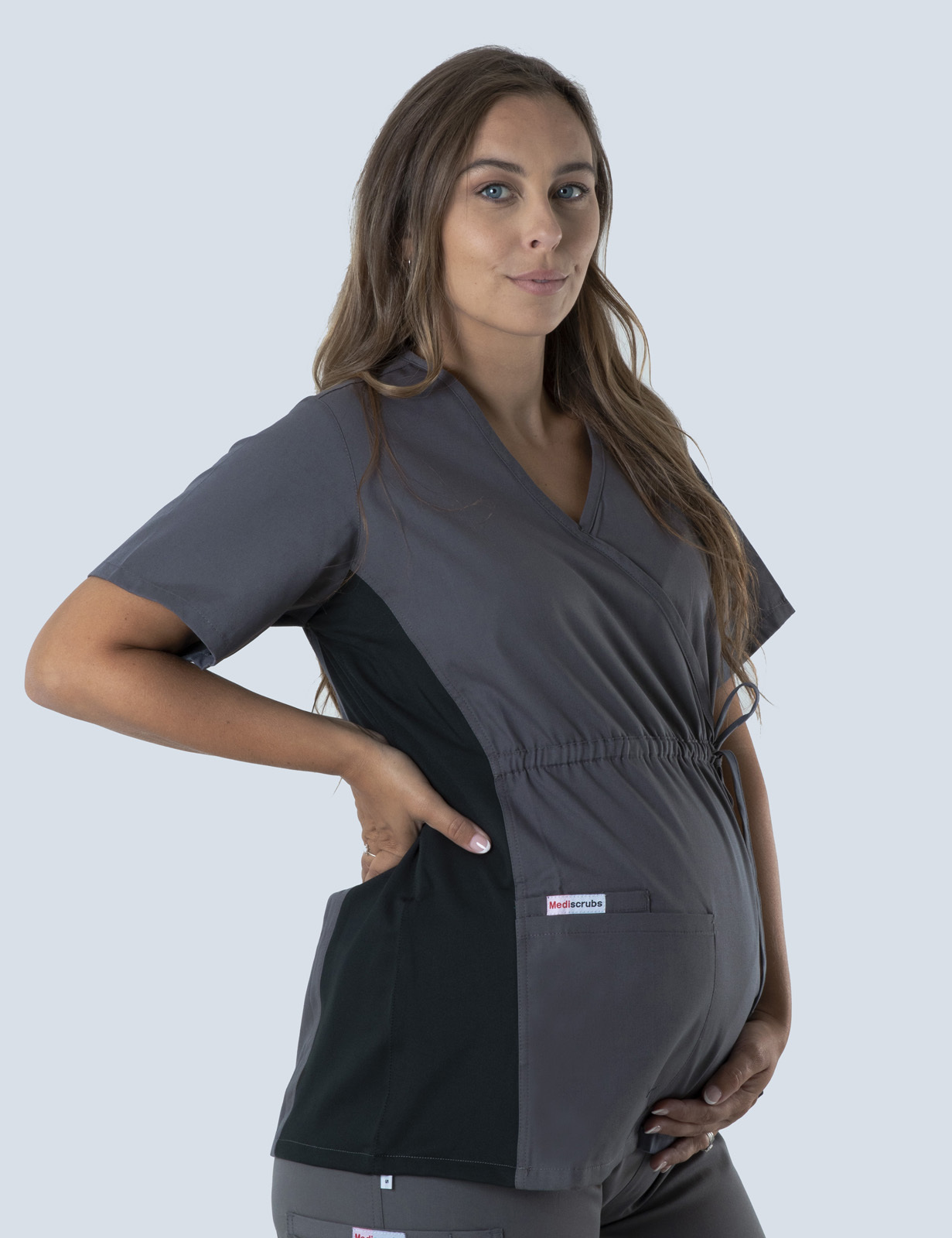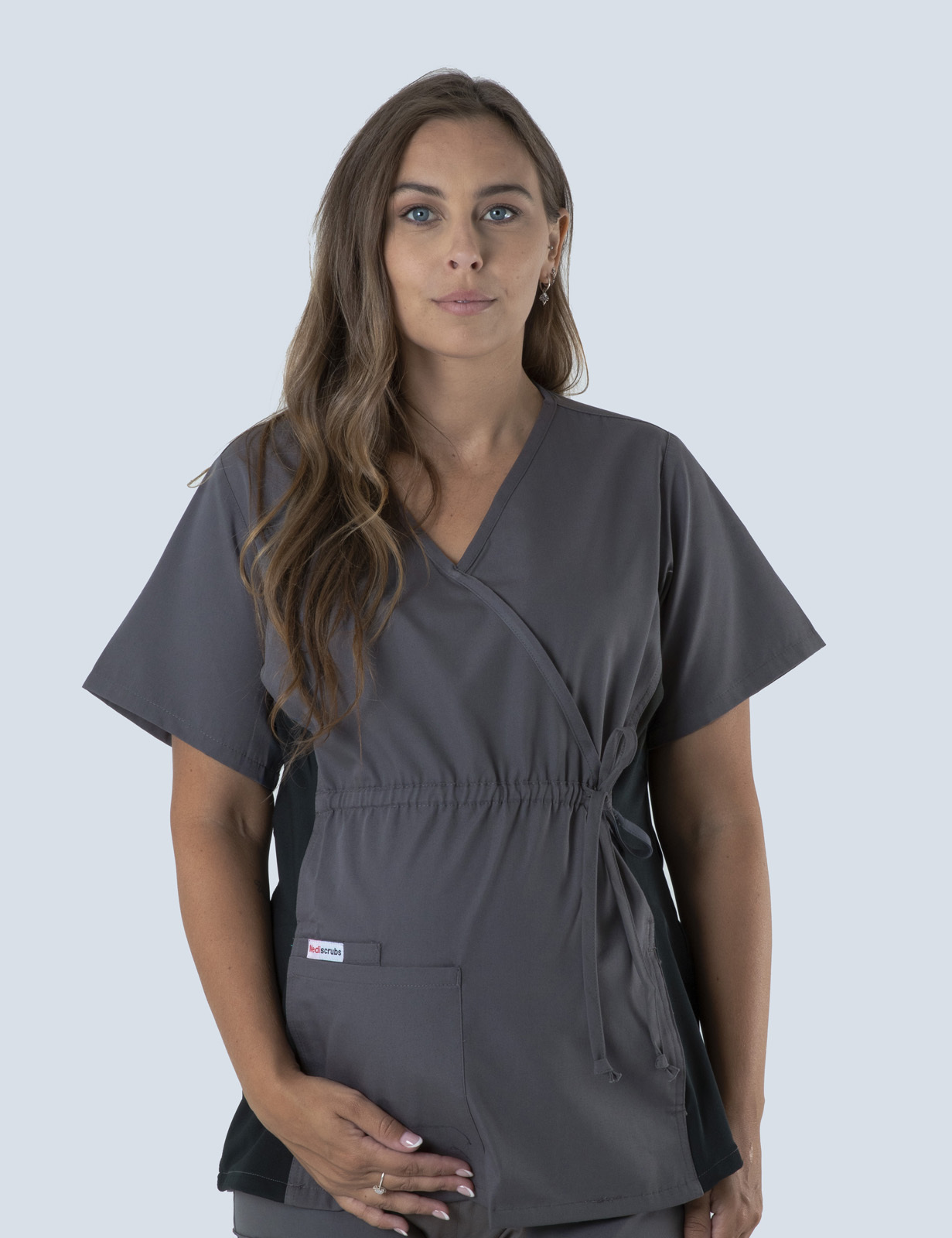 Maternity Scrub Top With Spandex Panel - Steel Grey - 5X Large