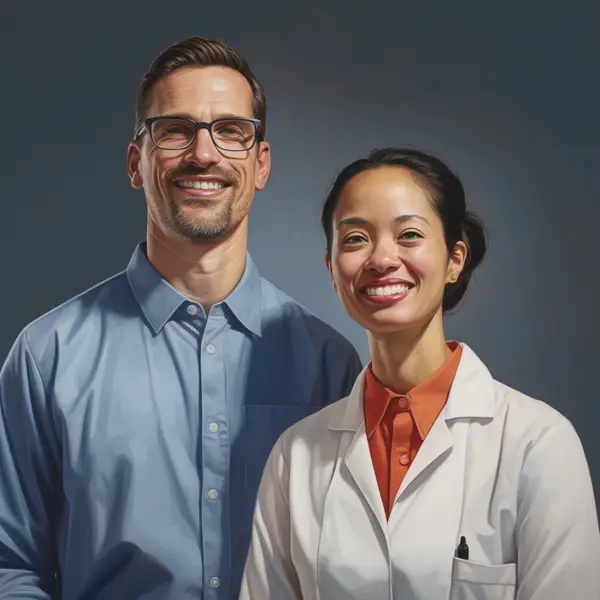 5. AI-Generated Image of Paediatricians: This AI-generated image of two paediatricians displays a male and female doctor wearing white coats and a warm inviting smile to demonstrate trust. While it captures the caring nature often associated with paediatricians, it perpetuates a stereotype typical of paediatricians. On the plus side, gender and ethnic diversity have been considered. Ensuring that AI-generated images of paediatricians encompass a variety of genders is crucial for challenging gender biases and providing a more accurate representation of this specialised medical profession.