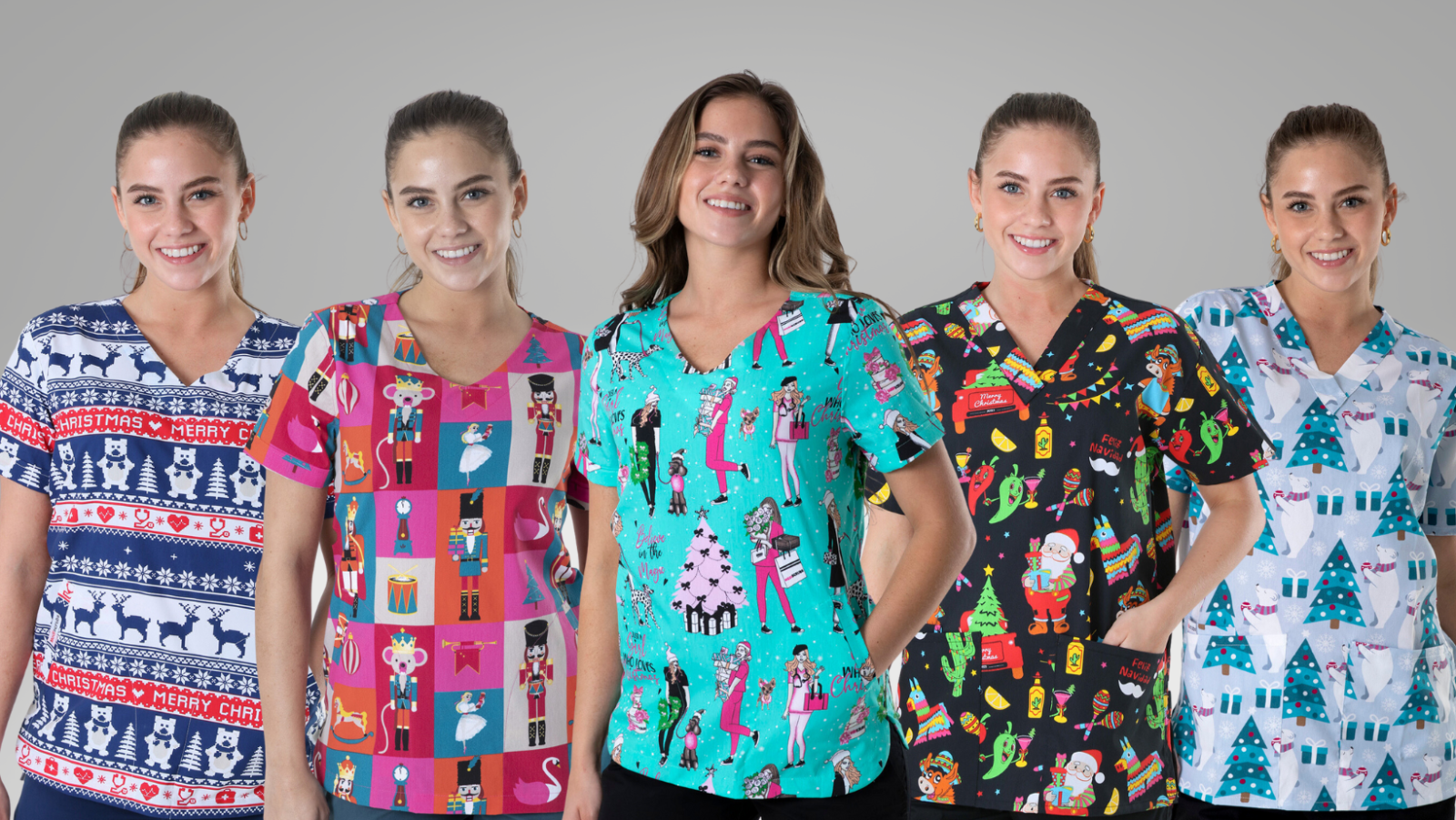 Our new Christmas scrub tops come in five delightful and eye-catching prints that capture the true spirit of the season. Whether you're a fan of classic and delightful Christmas themes like "Polar Wonderland" and "Nutcracker" or you prefer a Christmas theme with a twist, such as "Ugly Sweater" or "Feliz Navidad Mexican Party," we've got a perfect Christmas scrub top to suit every taste. These festive prints are guaranteed to bring a smile to your patients, colleagues, and anyone you encounter during your shifts.