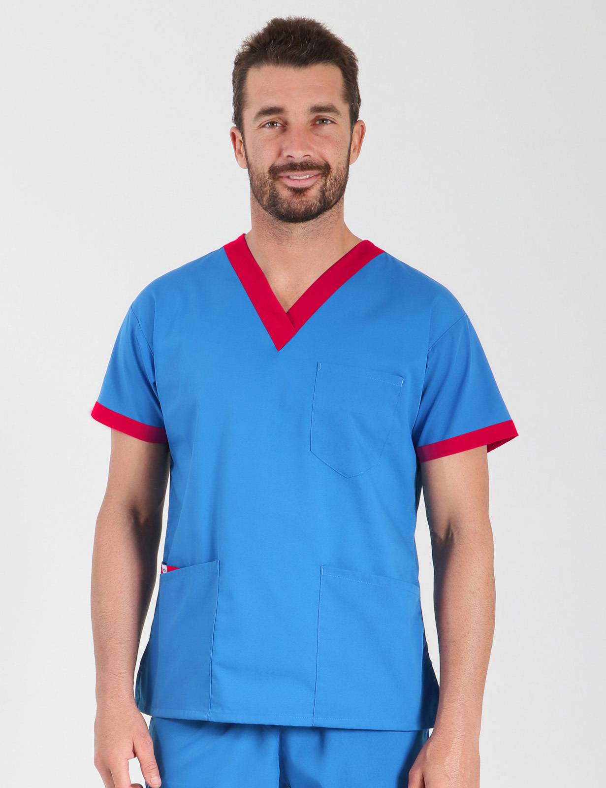 Men's Contrast Trim 4 Pocket Top - Royal with Red Trim - Small