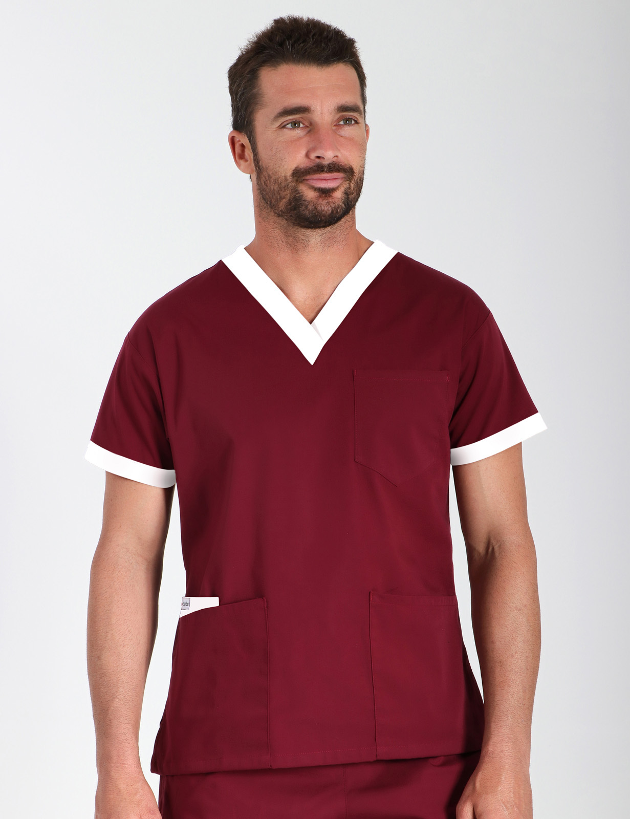 Men's Contrast Trim 4 Pocket Top - Burgundy with White Trim - 2X Large