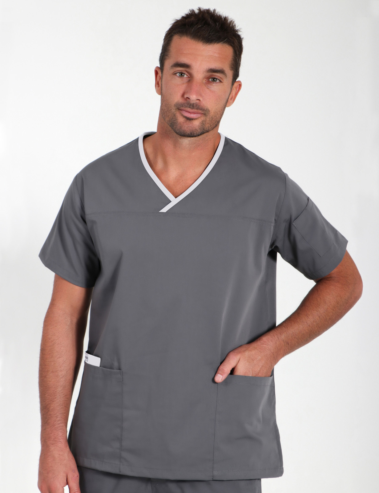 Men's Fit Scrub Top - Steel Grey with White Trim - X Large