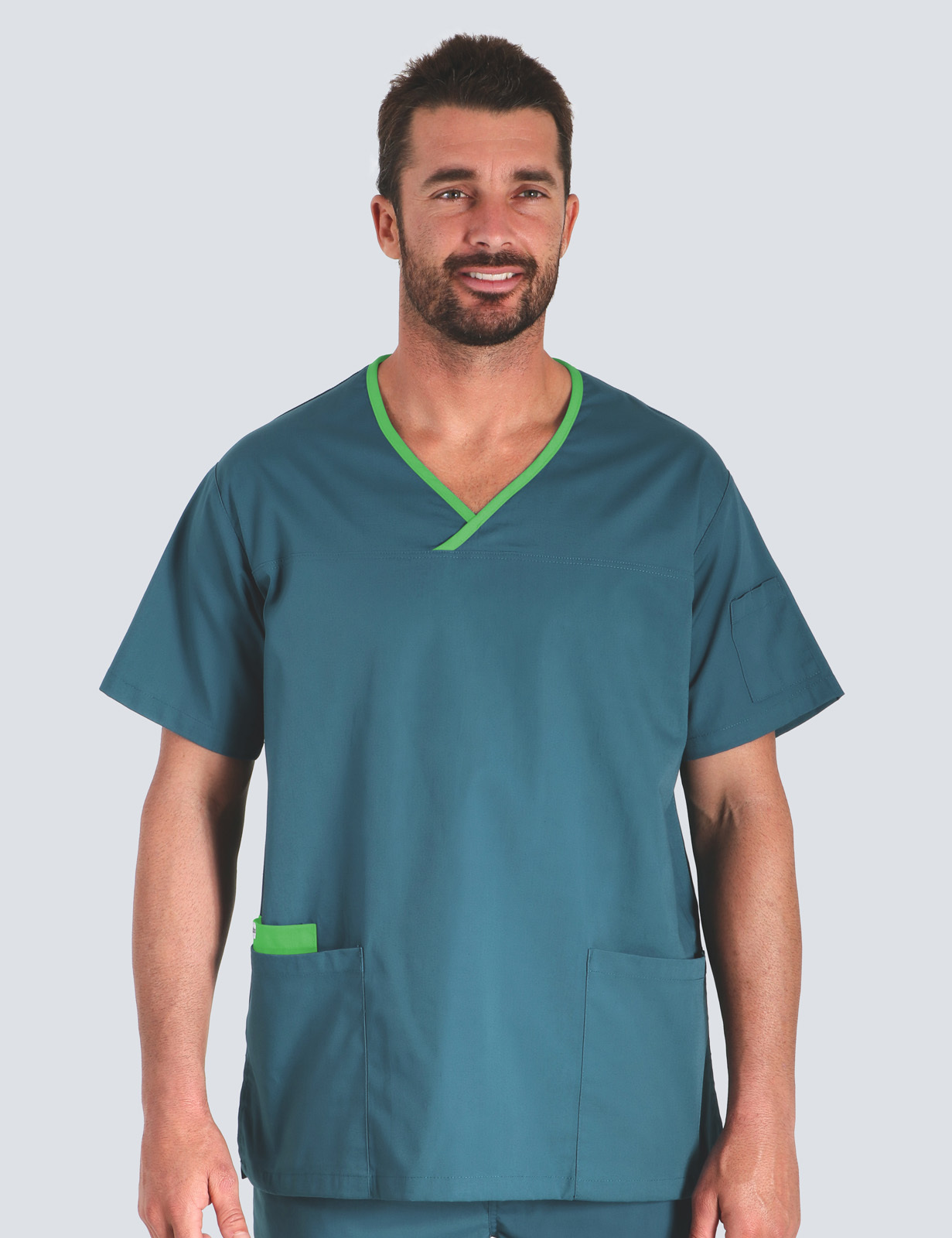 Men's Fit Scrub Top - Caribbean with Lime Green Trim - X Small