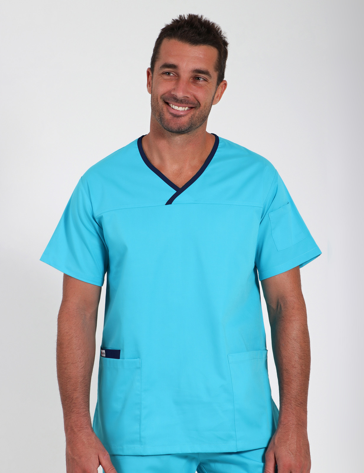 Look sharp and feel confident every day in this fashionable 'men's fit' scrub top with a contrasting trim collar and discreet contract trim inside one front pocket. When we created this scrub top for men we knew we wouldn't be reinventing scrub fashion completely but were very serious about re-evaluating the everyday work wardrobe for men in healthcare. The contrast trim colour allows for easy identification and adds a little pop to the top.