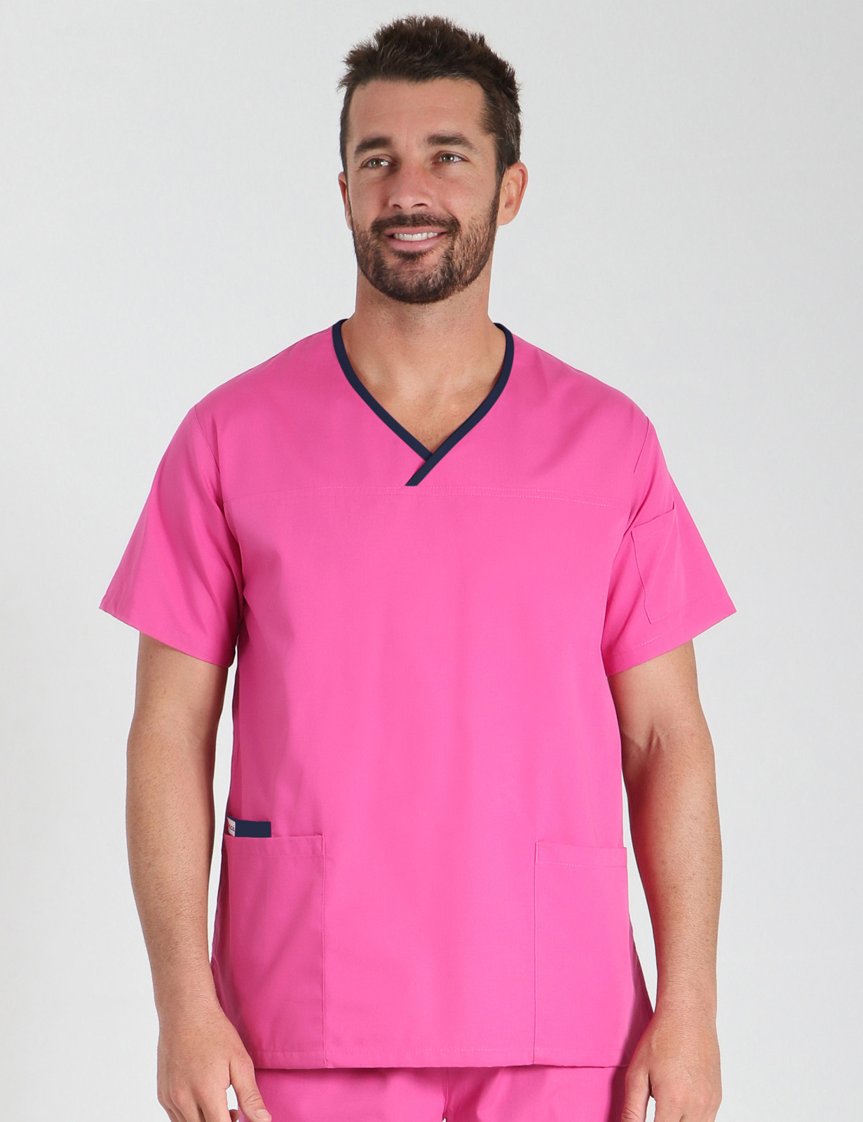 Men's Fit Scrub Top - Pink with Navy Trim - Large