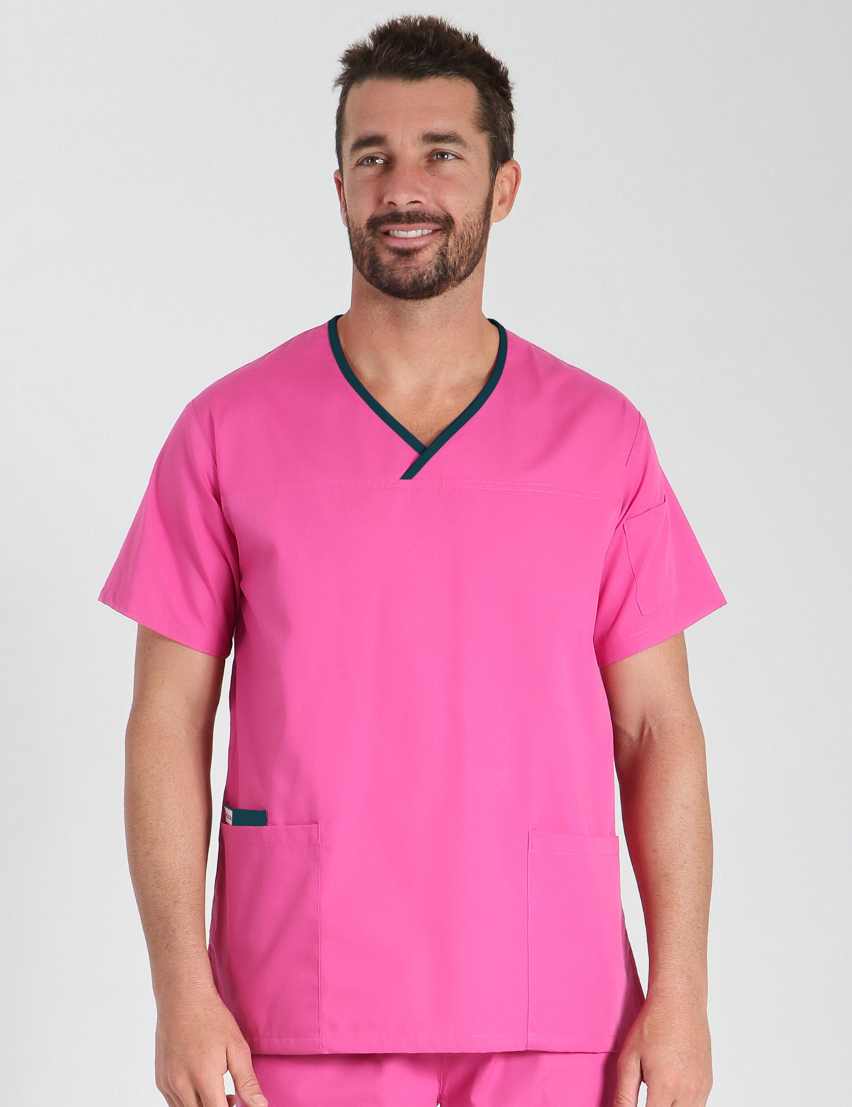 Look sharp and feel confident every day in this fashionable 'men's fit' scrub top with a contrasting trim collar and discreet contract trim inside one front pocket. When we created this scrub top for men we knew we wouldn't be reinventing scrub fashion completely but were very serious about re-evaluating the everyday work wardrobe for men in healthcare. The contrast trim colour allows for easy identification and adds a little pop to the top.