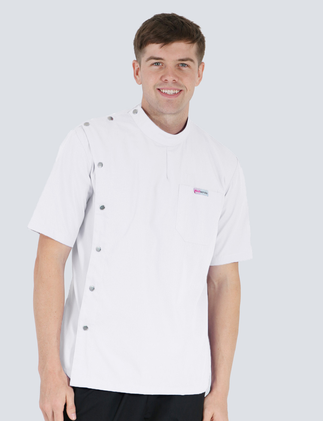 Dental coats (jackets) are the most important component of any dentist or pharmacist uniform. A well-fitting dental/pharmacy coat (jacket) will complete your professional image like nothing else. Whether you want to look the part or simply keep warm in a cold practice room, we????ve got your dental jacket needs covered. This jacket/coat is for pharmacists and dentists and has been designed for the traditionalist who likes a contemporary look. With a nice accent of trim on the breast pocket. The coat is easily removed with snap buttons from the collar to the hem.