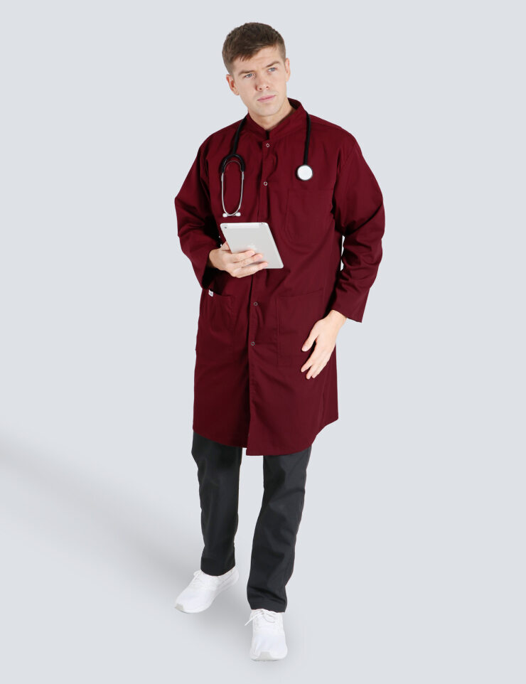 Introducing the 'military collar' lab coat. A stylish-looking coat designed to protect your clothing from hazardous substances while working in a laboratory. Military collar lab coats are a fashion statement piece that allows you to dress effortlessly and look professional at the same time.