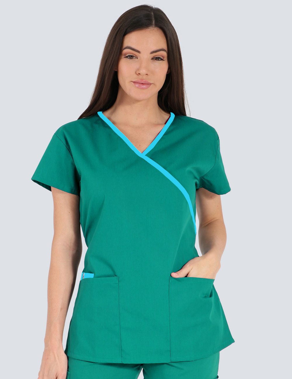 Mock-Wrap Top - Hunter with Aqua Trim - 3X Large