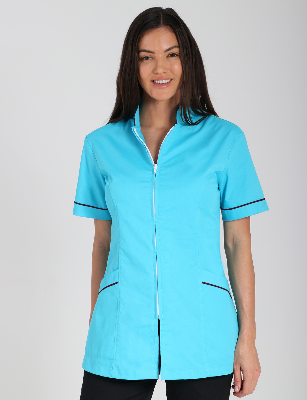 From work to home, the Nellie tunic with contrasting trim is a professional work uniform that means business.
