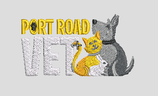 Port Road Veterinary Clinic Logo \n \nNormally placed onto the left side of the chest.