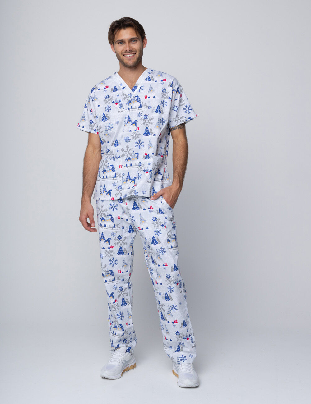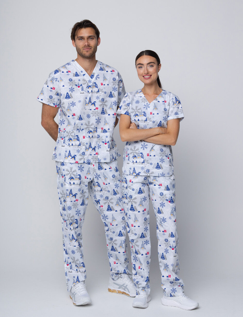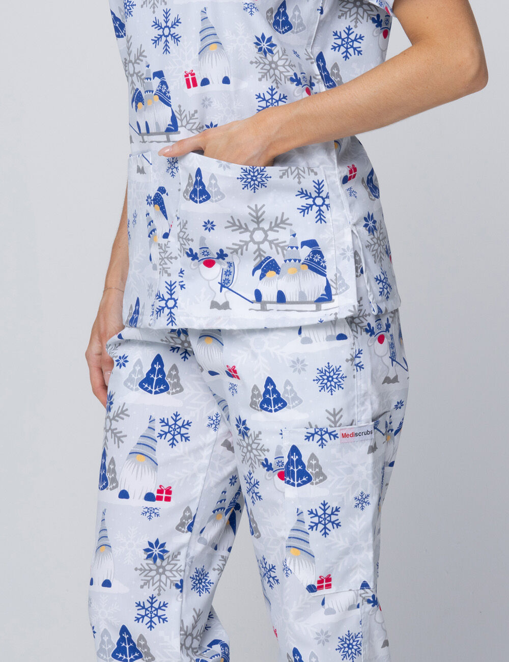 • Complete scrub sets: Available in matching tops and pants for a coordinated, Christmas-ready look.