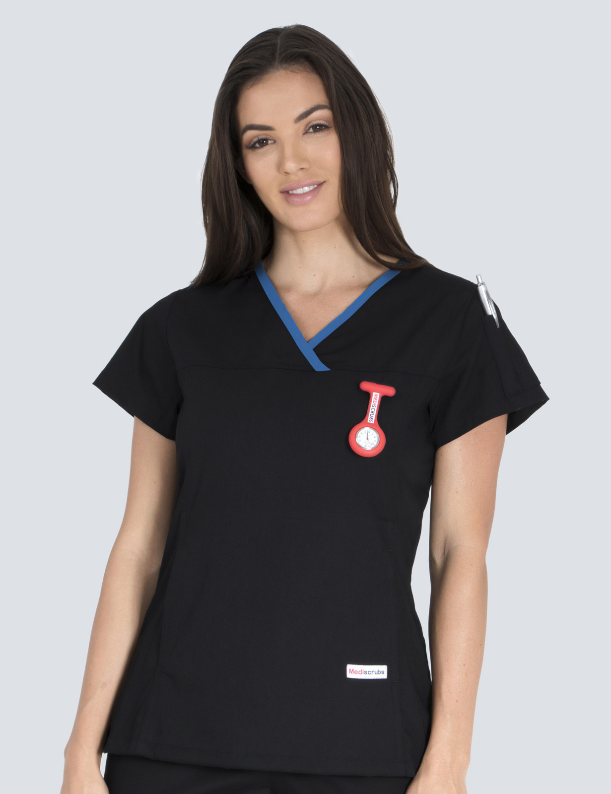 Women's Fit Solid Scrub Top - Black with Royal Trim - X Large