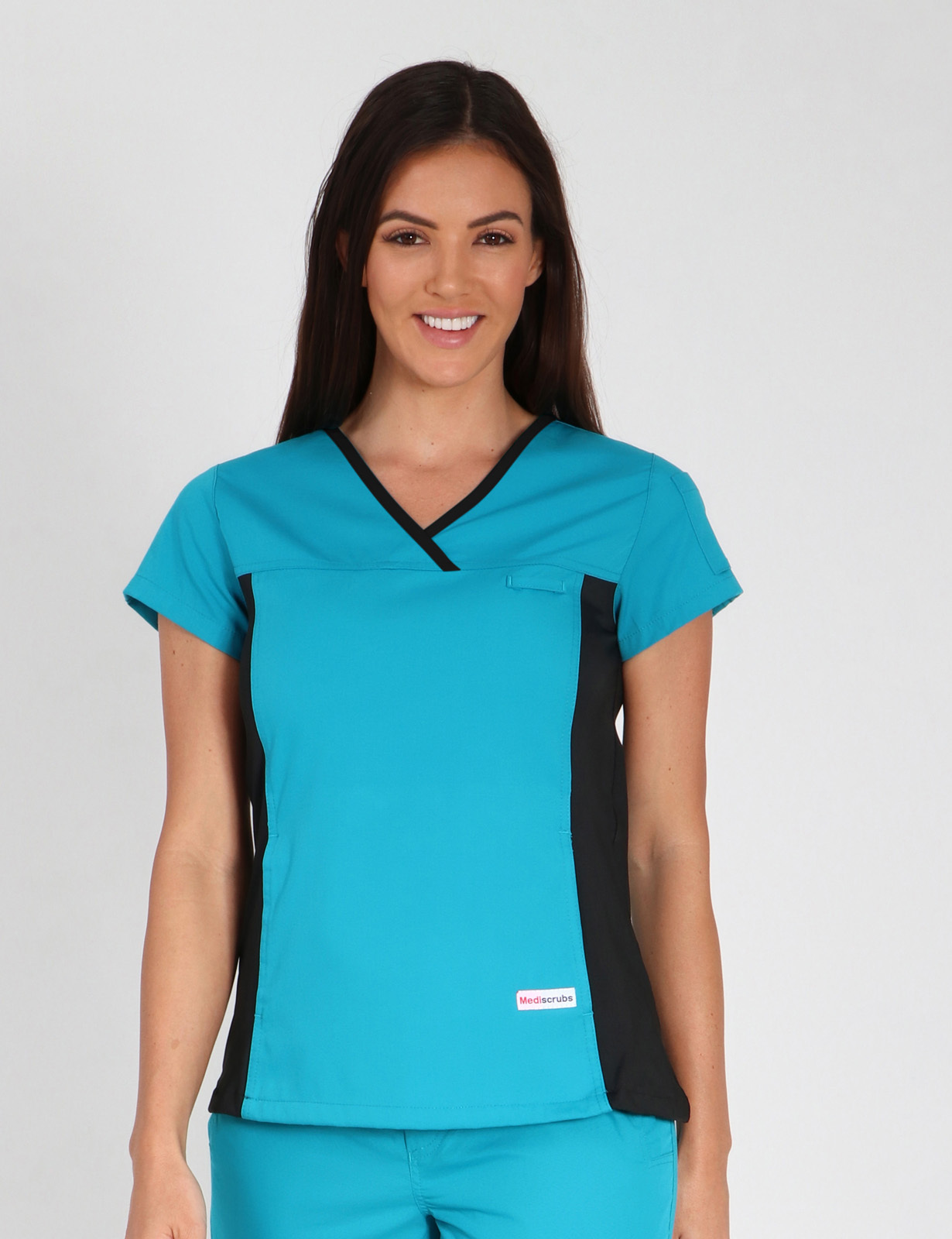 Designed specifically for a feminine and fitted look, this women's fit scrub top with contrasting trim colour combinations is a break from traditional scrub workwear, and s ideal for use in any medical or healthcare setting to distinguish employee roles and departments. The scrub top itself combines the best of modern styling and durability and is made from specially formulated blended fabrics, featuring state-of-the-art antimicrobial protection and 4-way stretch properties for exceptional comfort.