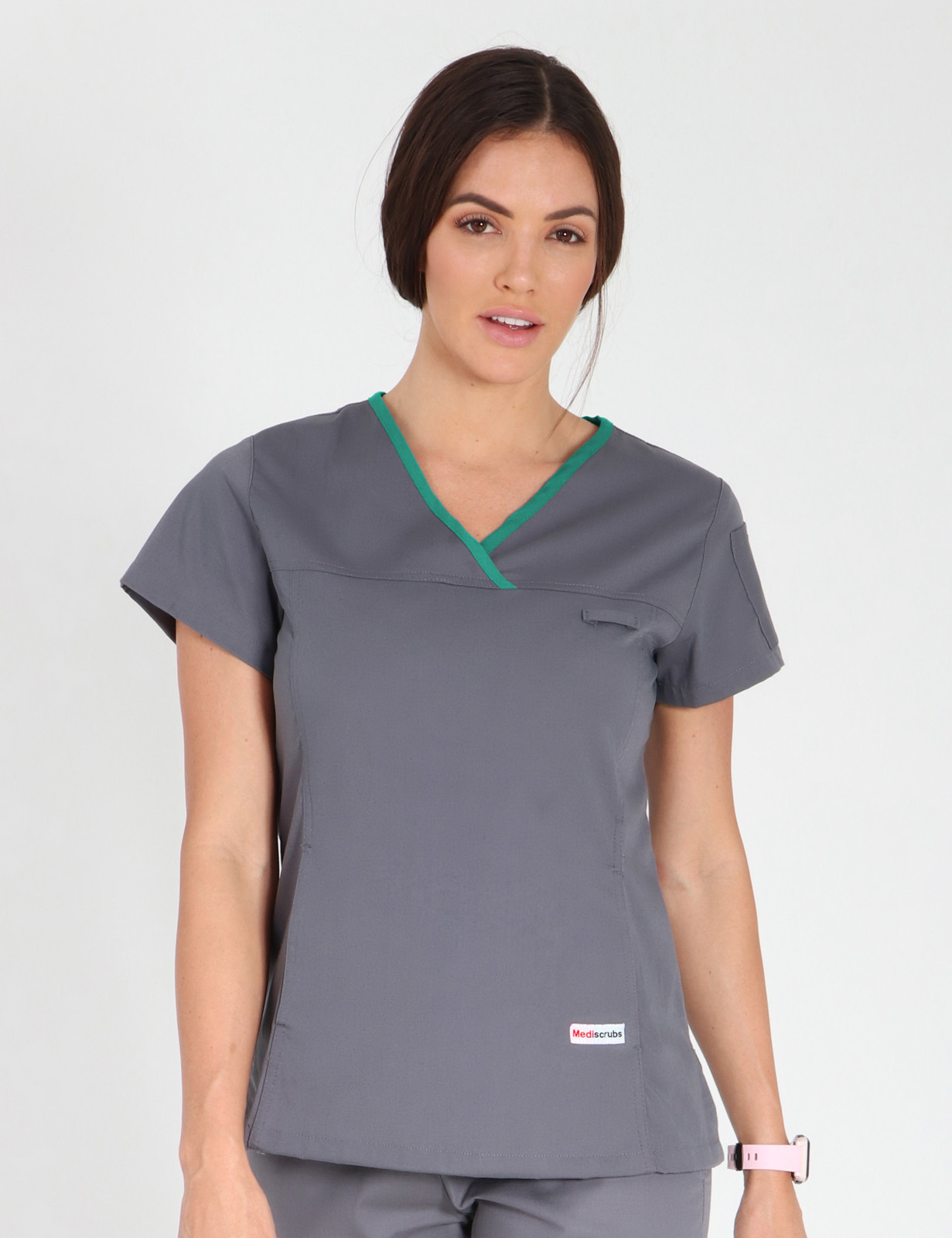 Women's Fit Solid Scrub Top - Steel Grey with Hunter Trim - X Large
