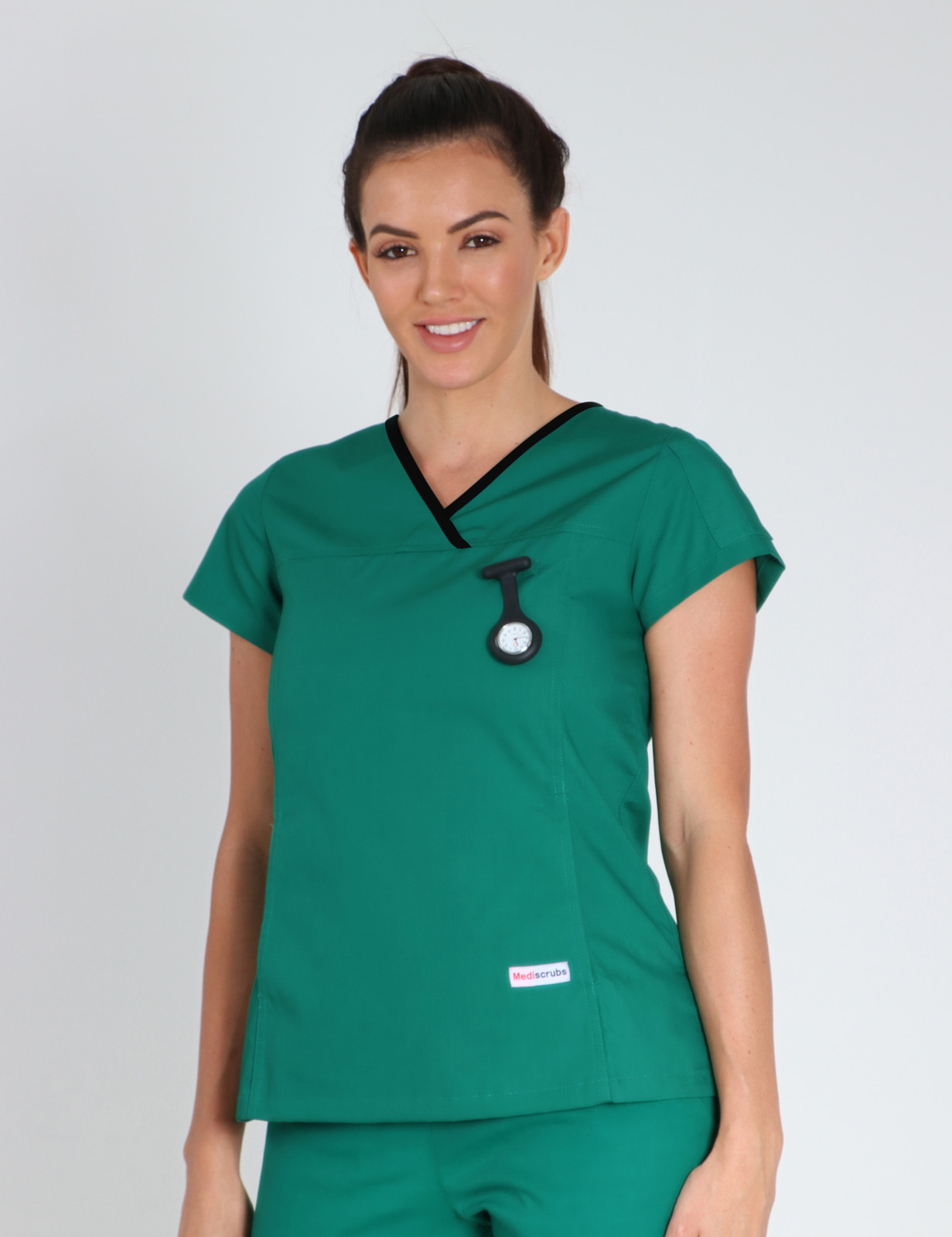 Women's Fit Solid Scrub Top - Hunter with Black Trim - X Small