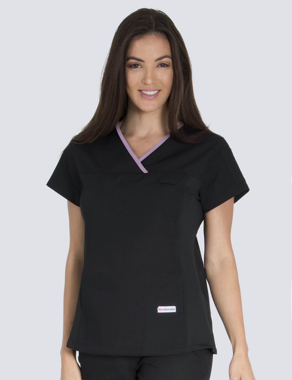 Women's Fit Spandex Scrub Top - Black with Lilac Trim - 3X Large