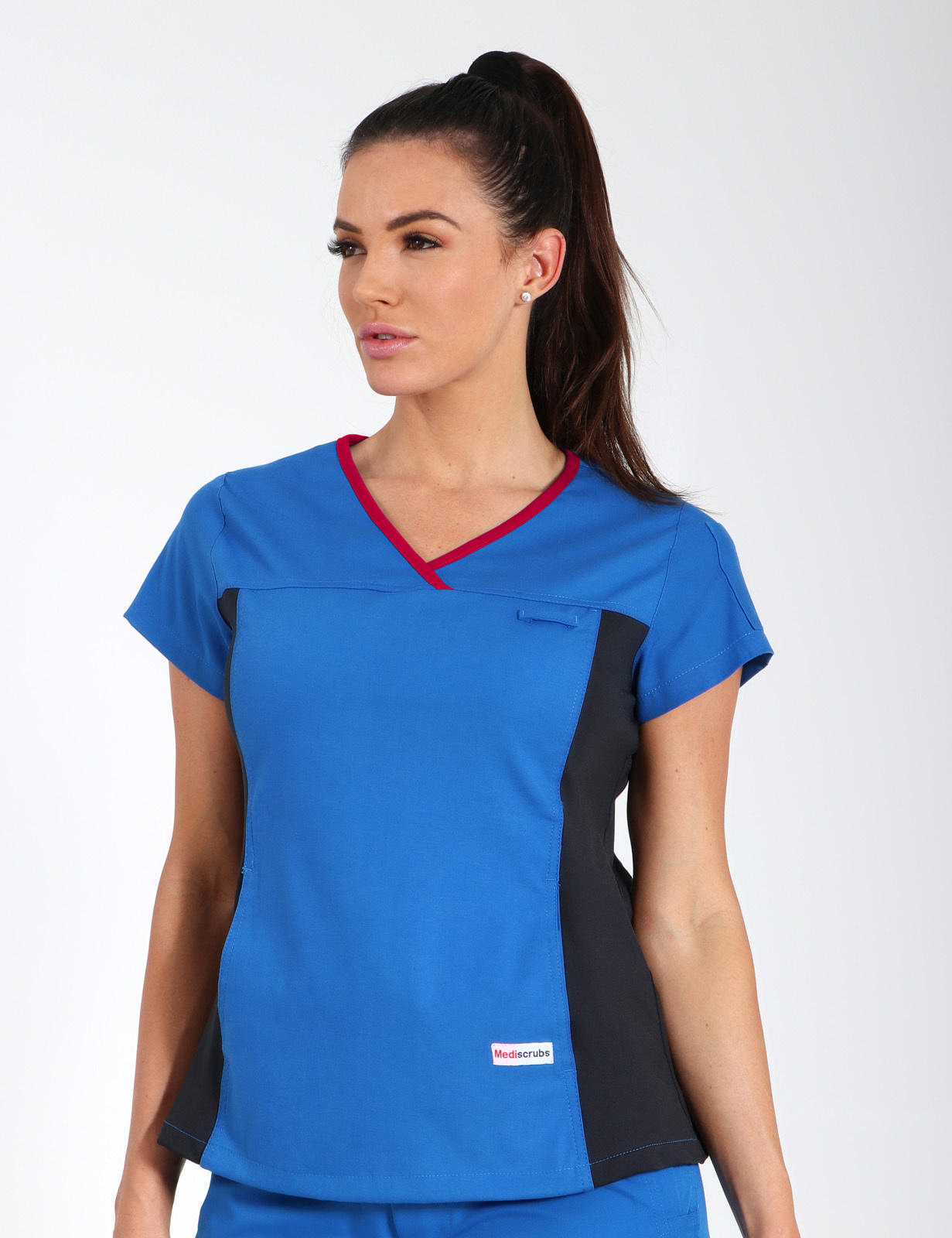 Women's Fit Spandex Scrub Top - Royal with Red Trim - Medium