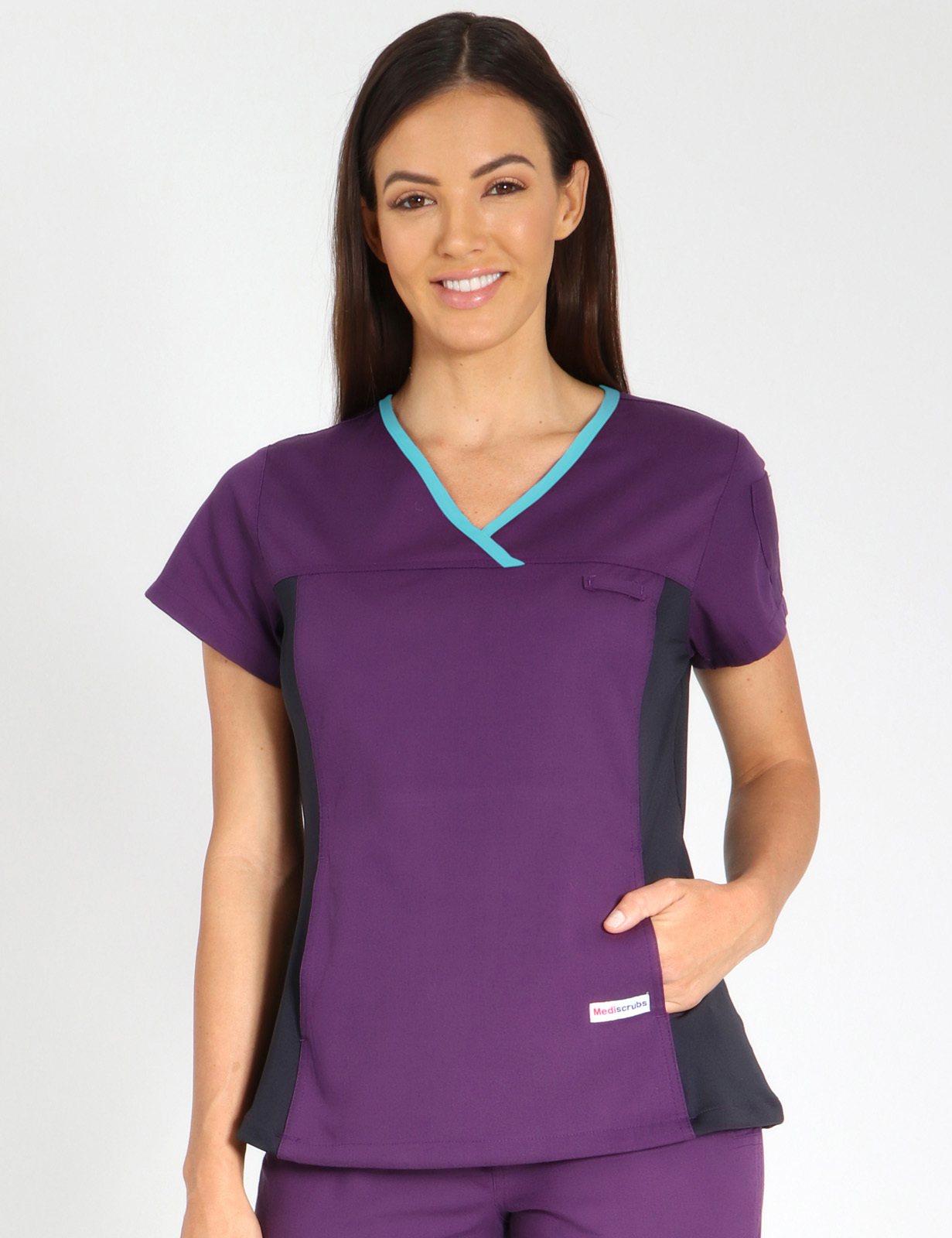 Check out this professional-looking women's scrub top with black spandex side panel. Designed for all-day comfort, this women's scrub top features a contrasting trim colour collar. Sporting black spandex side panels on either side to accentuate your feminine curves, this highly sought-after scrub top adapts easily to any body shape and is a versatile addition to any healthcare professional's work wardrobe.