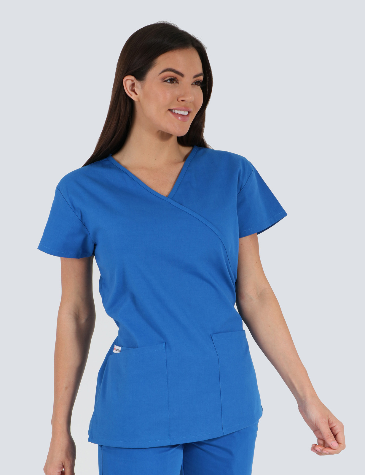 I now have 8 of these mock wrap scrub tops. They're slightly stretchy so don't restrict movement. Wash & wear well & quick to dry. Soft fabric doesn't allow fur (or slobber) to stick for long. Nice deep pockets & side vents make them really comfy.Ali