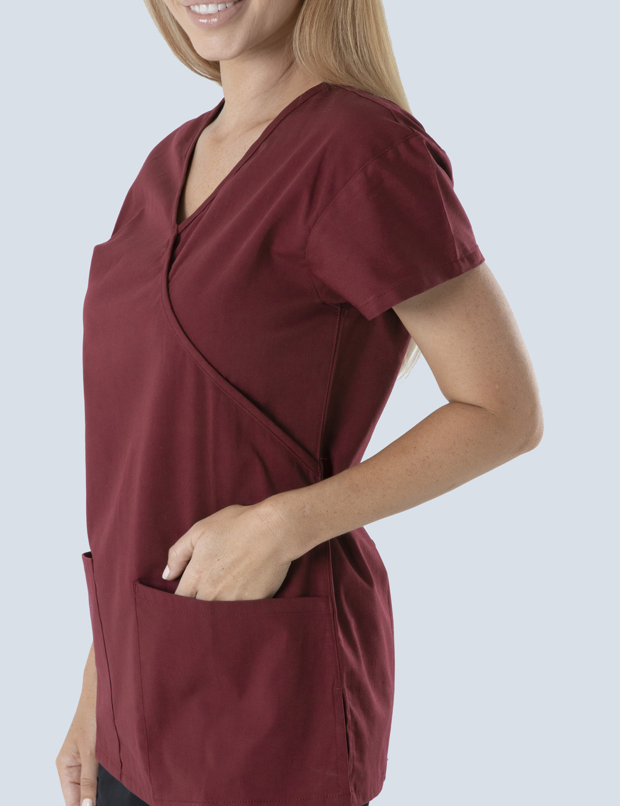 I now have 8 of these mock wrap scrub tops. They're slightly stretchy so don't restrict movement. Wash & wear well & quick to dry. Soft fabric doesn't allow fur (or slobber) to stick for long. Nice deep pockets & side vents make them really comfy.Ali